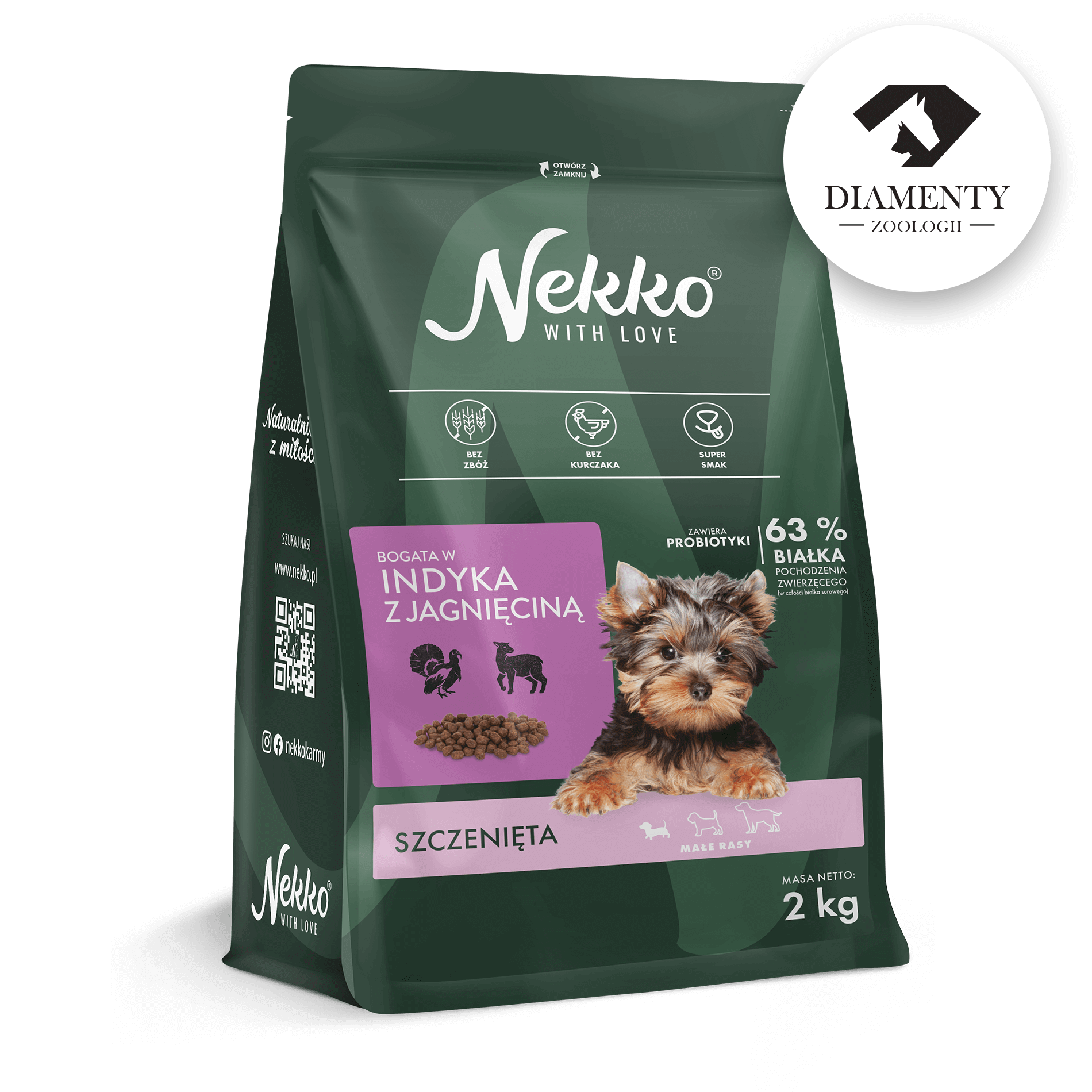 Nekko to pełnoporcjowa, sucha karma dla szczeniąt, która wyróżnia się wysoką zawartością białka pochodzenia zwierzęcego oraz wyjątkową smakowitością. Karma pozbawiona jest kurczaka, zbóż, kukurydzy oraz soi. Nie znajdziesz w niej również szkodliwych konserwantów i sztucznych barwników.
