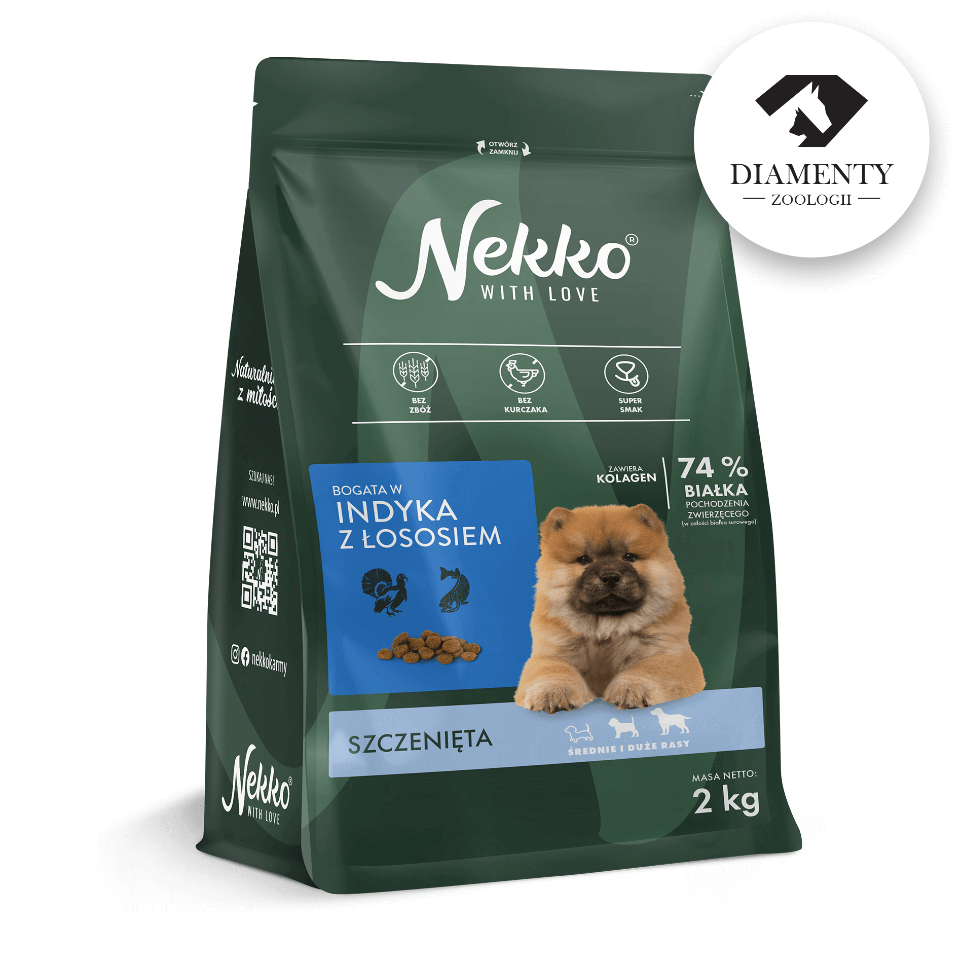 Nekko to pełnoporcjowa, sucha karma dla szczeniąt, która wyróżnia się wysoką zawartością białka pochodzenia zwierzęcego oraz wyjątkową smakowitością. Karma pozbawiona jest kurczaka, zbóż, kukurydzy oraz soi. Nie znajdziesz w niej również szkodliwych konserwantów i sztucznych barwników.