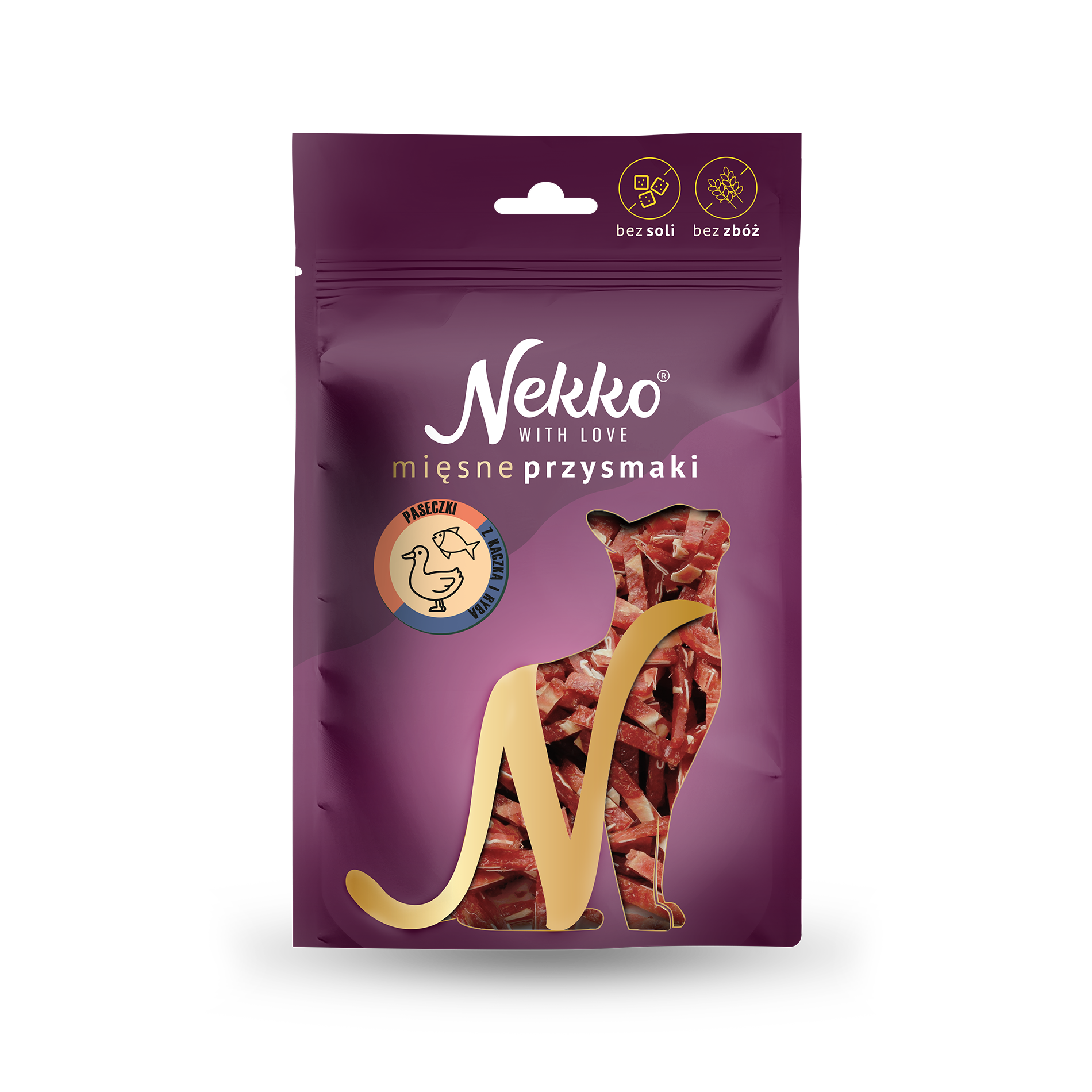 Paseczki kaczki z dorszem. Mieszanka paszowa uzupełniająca dla kotów.